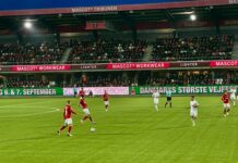 Efter flere store chancer kom forløsningen i det 38. minut. Tobias Bech fik bolden i feltet og sparkede fladt ind bag Green. Et præcist skud, der udløste et jubelbrøl på Ceres Park, som satte gang i champagnegaloppen over højtalerne. To minutter senere var det AGF-anfører Patrick Mortensen, der steg til vejrs. Et indlæg blev sendt ind fra siden, og Green kom tøvende ud for at bokse. Mortensen var hurtigere og headede sikkert bolden i nettet til 2-0. På få minutter blev kampen reelt vendt til AGF’s fordel.