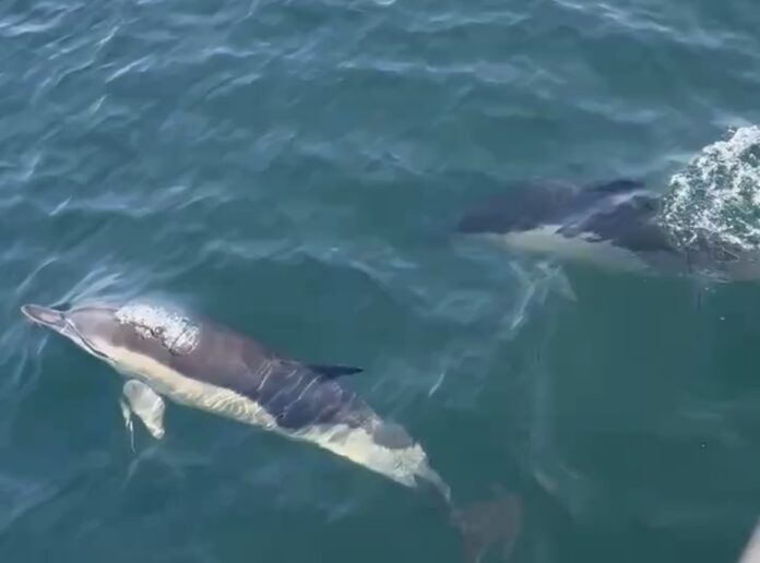 Forskellen på en delfin og et marsvin er til at få øje på, forklarer naturvejlederen. »Det kan du tydeligt se på snuden. Den er noget mere spidssnuet end et marsvin. Og så er rygfinden også meget mere markant på en delfin.«