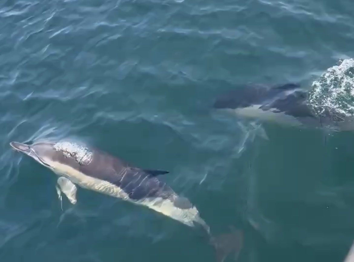 Klokken 14 dukkede de op. To delfiner, der i næsten en hel time legede rundt om båden. »Hr. delf og fru fin legede rundt om båden til vores kæmpe overraskelse. Det var en helt fantastisk oplevelse,« fortæller Anette Fuglsang Nielsen.