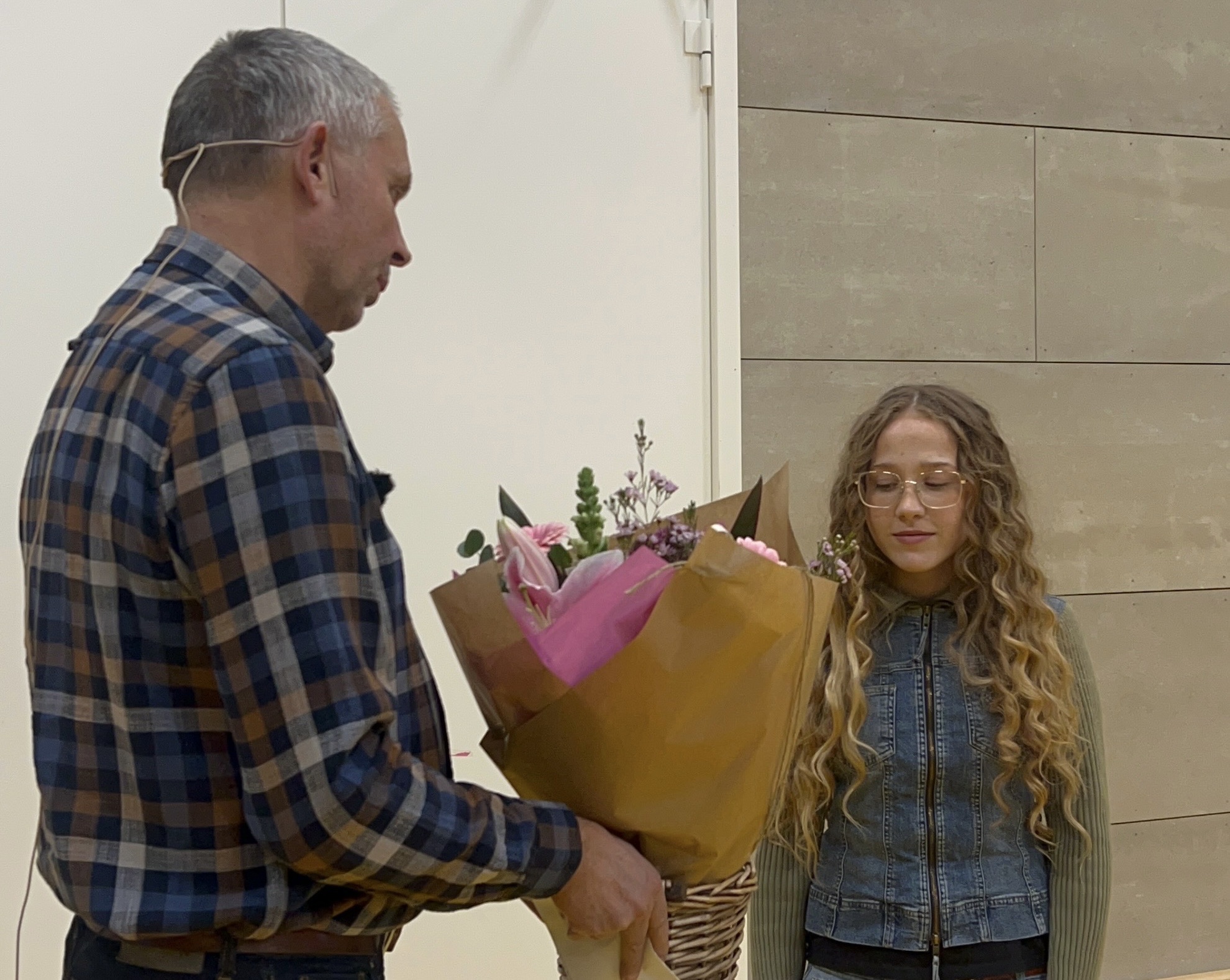 Klokken 12 blev alle elever samlet i hallen. Anna Frida sad blandt sine klassekammerater, da skoleleder John Agerholm bød velkommen og rettede blikket mod hende. »Du har selv skrevet sangen, og du har selv skrevet musikken, og du fremførte det så professionelt, at du ikke kunne undgå at vinde. Det er hammer, hammer flot,« sagde han fra scenen.