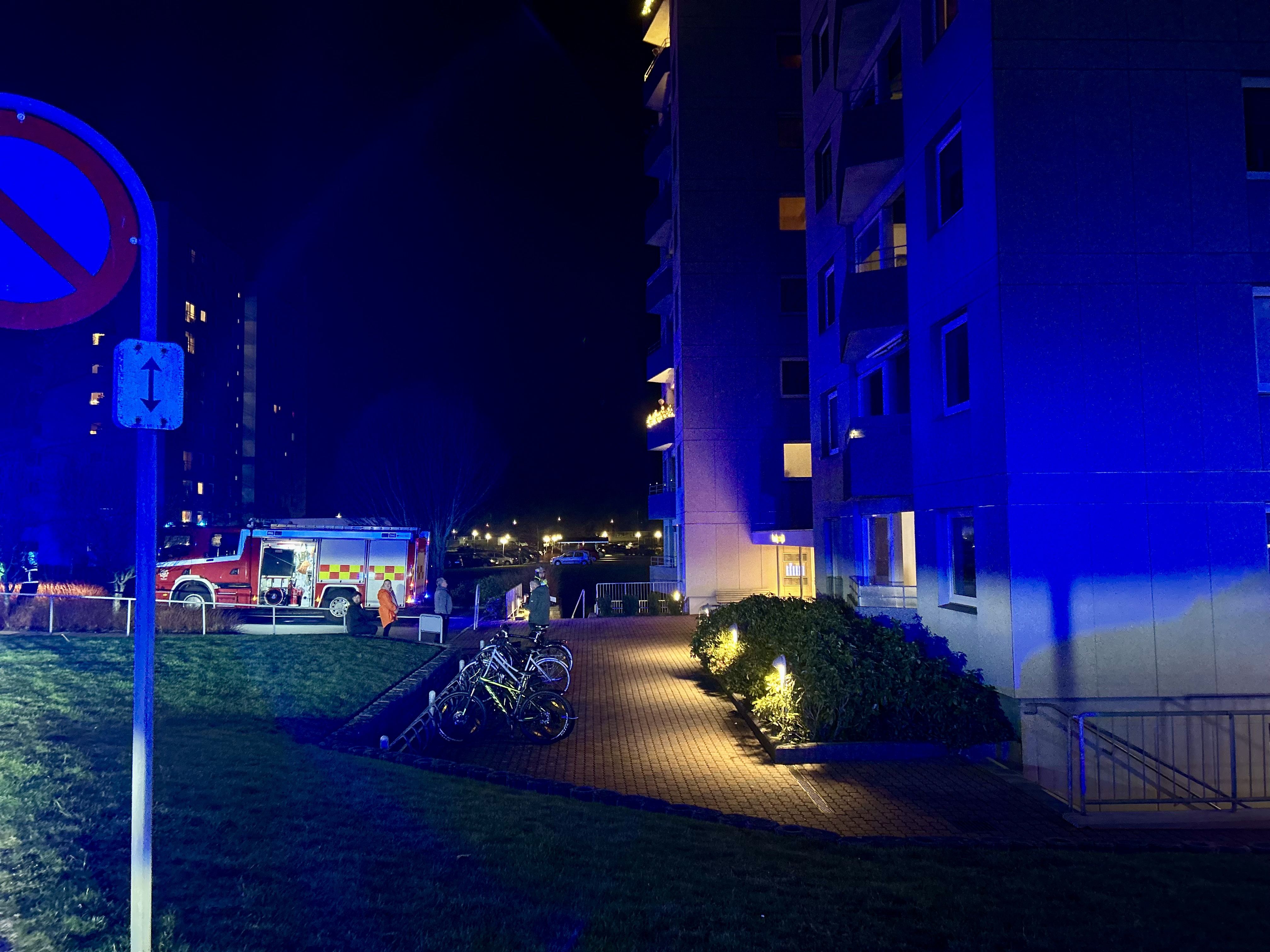 Til stede var ikke kun brandvæsenet, men også ambulancepersonale og politi, som bidrog til indsatsen og sikkerheden omkring hændelsen. Beboere fra adressen samt naboer samledes på vejen for at iagttage indsatsen, mens en mand, formodet at være den ansvarlige for branden, blev behandlet af redningspersonale og så ud til at være i god behold.