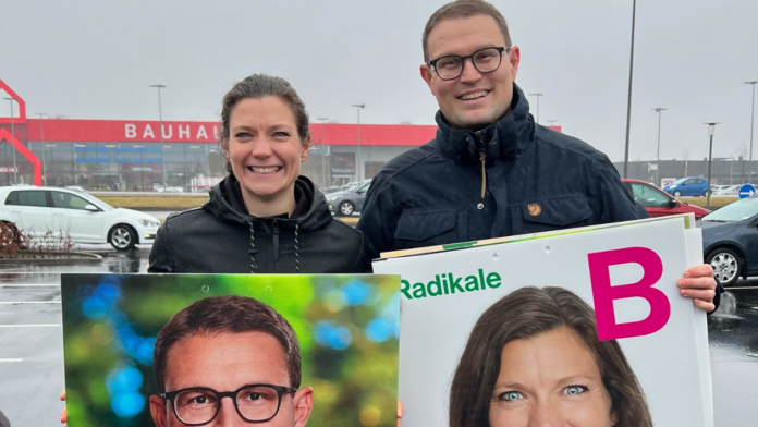 Tre uger før folketingsvalget blev udskrevet lørdag, og på slaget 12 måtte kandidaterne begynde at hænge plakater op. Himlen åbnede sig nærmest koordineret med valgudskrivelsen, men hverken regn eller politiske uenigheder kunne forhindre socialdemokraten Christian Rabjerg Madsen og Radikale Venstres Lotte Rod i at mødes med smil og kram for sammen at hænge de første valgplakater op i Kolding.