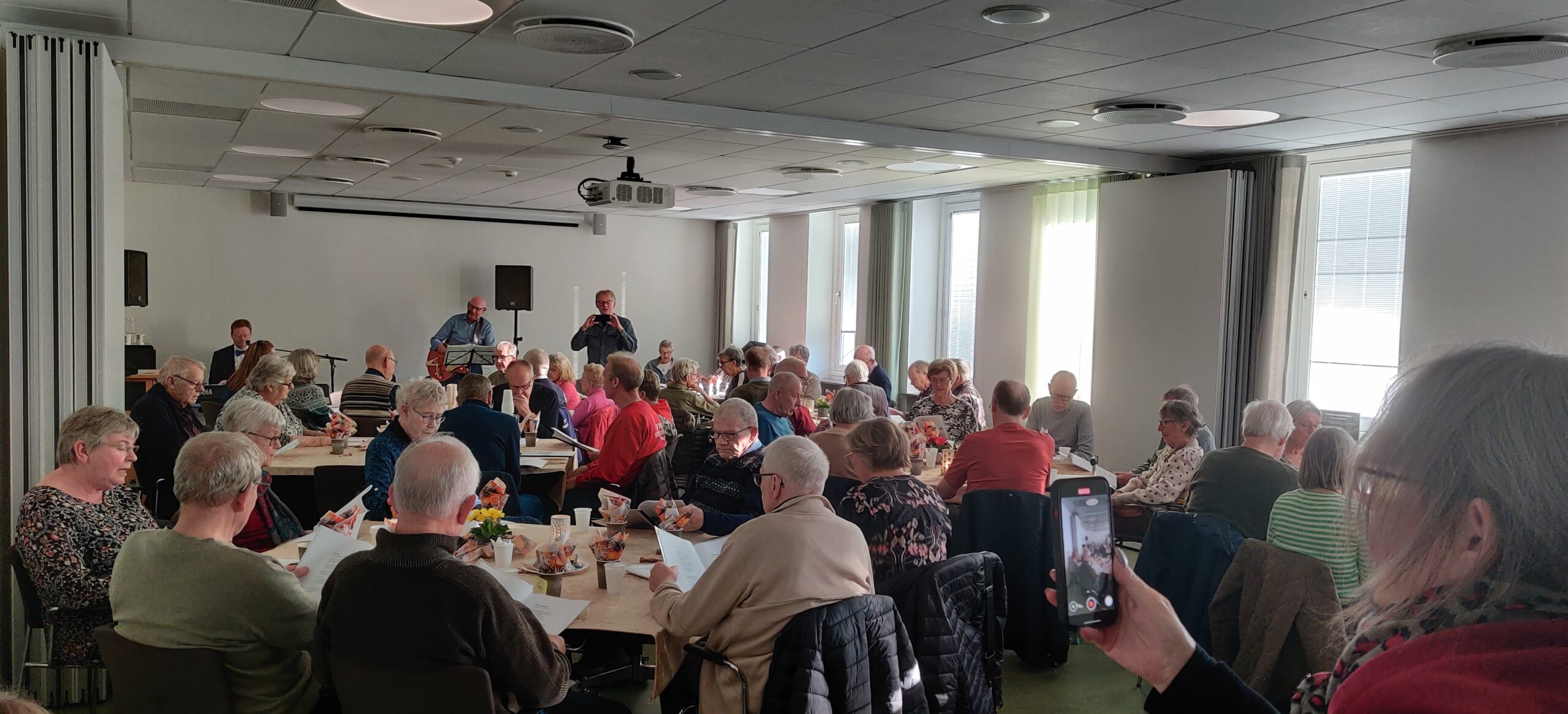 Lokale 12 var stuvende fuldt, en velspillende duo underholdt til fællessangen, der finder sted før kaffe og kage serveres, efter dette trædes danseskoene til.