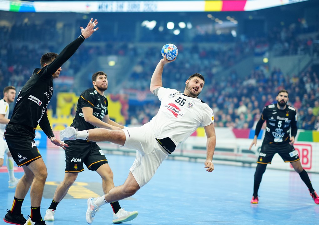 Østrig imponerede særligt mod Kroatien, hvor de hentede et overraskende point, og de takter fortsatte mod Spanien. I første halvleg fik de et direkte rødt kort til deres stjerne, Alex Dujshebaev, hvilket svækkede dem, da han både skulle lægges frem i et offensivt forsvar og udgøre en stor trussel angrebsmæssigt.