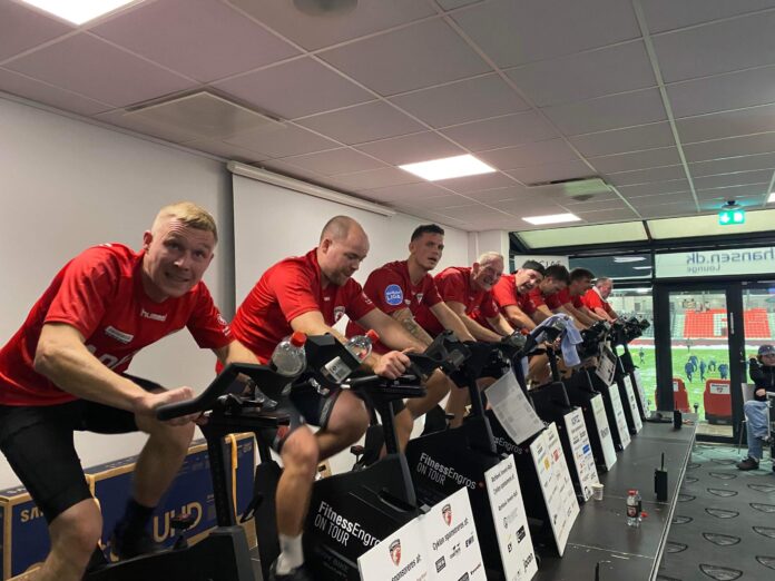 Mens det var koldt udenfor, var temperaturen høj i thansen loungen på Monjasa Park. I forbindelse med FC Fredericias VIP-arrangement før kampen blev der afholdt det årlige spinningarrangement i forbindelse med holdets sidste hjemmekamp i NordicBet Ligaen. I år var ni ryttere på podiet og skulle træde i pedalerne i en time, mens VIP-gæsterne kunne nyde maden, netværke og ellers se op på podiet, hvor der blev knoklet igennem i FC Fredericias tjeneste.