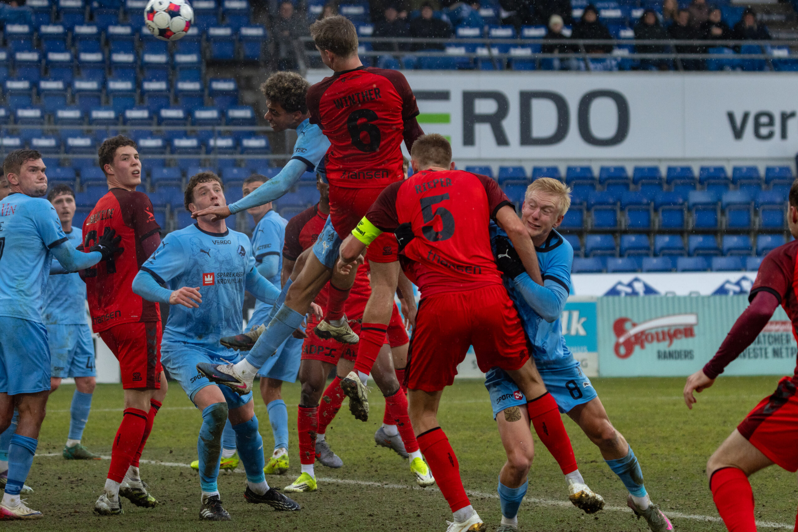 Herefter udviklede kampen sig til et åbent opgør med skiftende perioder. Randers havde i lange stræk overtaget og pressede FC Fredericia tilbage på banen. Særligt dødboldene skabte uro hos gæsterne, hvor målmand Valdemar Birksø flere gange så usikker ud i feltet.