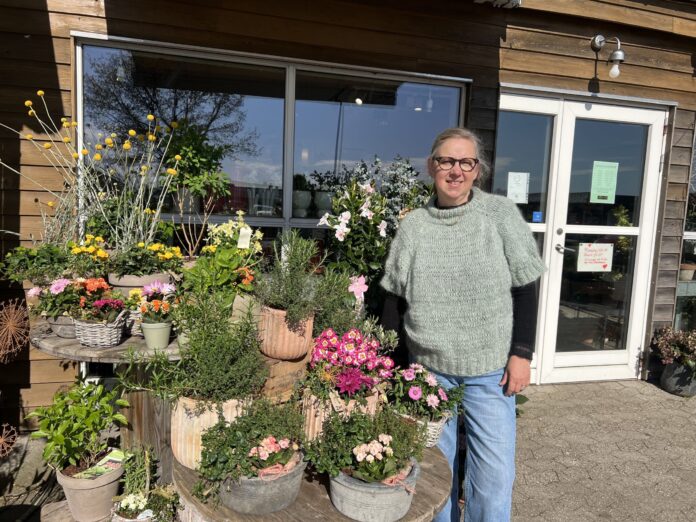 »Vi vil jo også gerne sende buketten ud til mor, hvis det er, at man nu ikke lige kan komme forbi. Så har vi vores hjemmeside, I kan gå ind på. Så tøv ikke. Husk at handle lokalt, vi er så klar til at hjælpe jer.«
