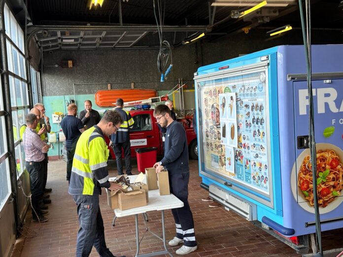 Og så kan en rød brandbil godt vige pladsen til fordel for en blå Hjem IS-bil.