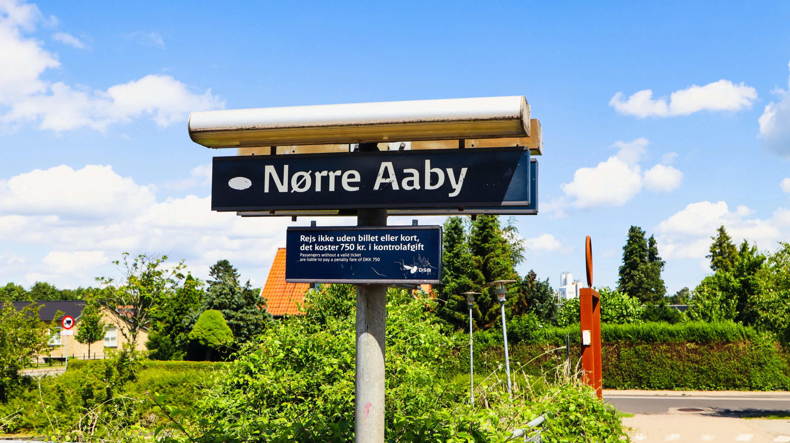 Nørre Aaby Station, skilte, tunnel, tog, DSB, 7. Juli 2021