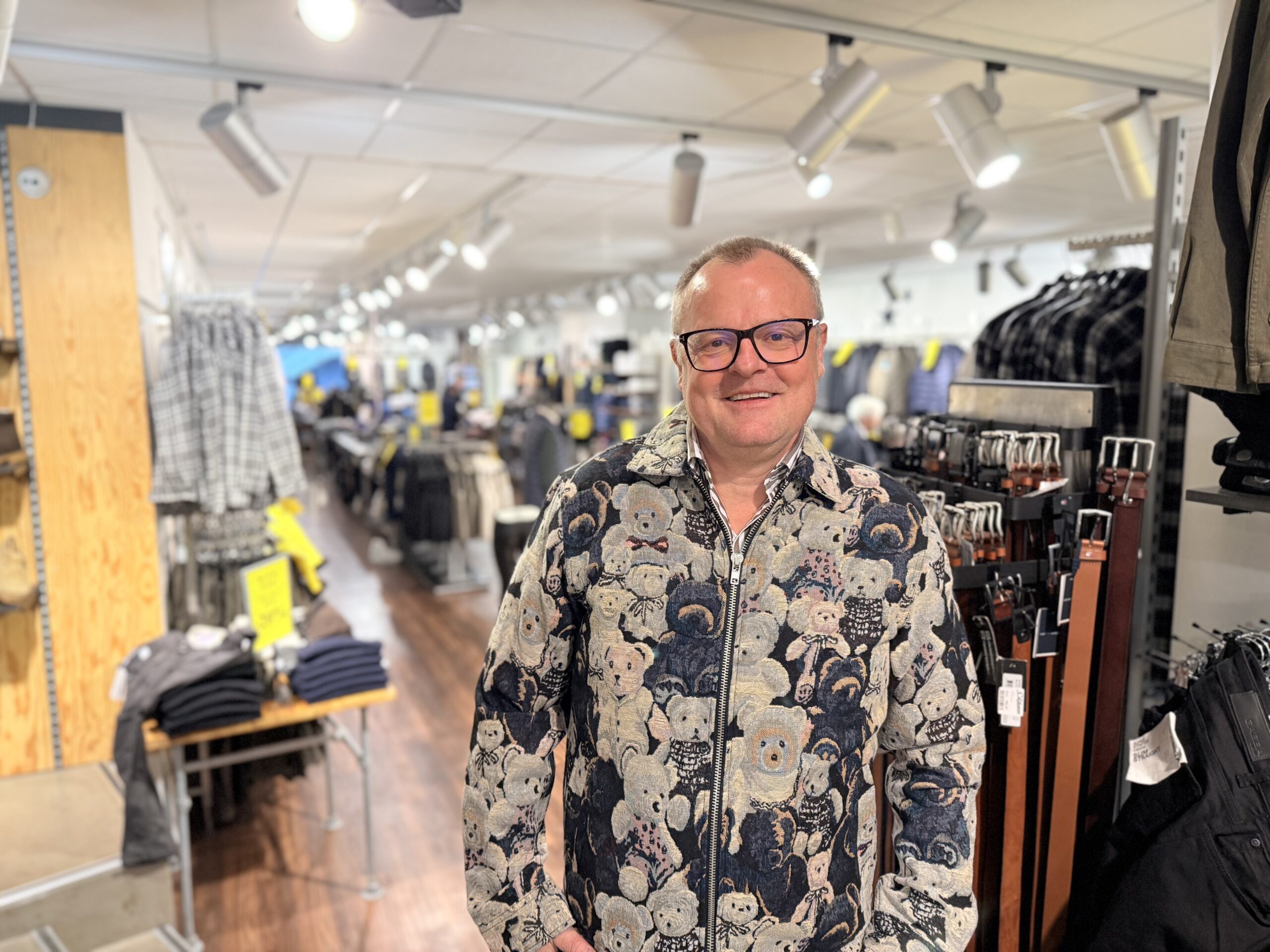 Han smiler, mens han beskriver den. »Der må gerne ske lidt nyt. Jeg ved godt, vi ikke sælger mange af dem, men den har et fedt udtryk og noget kant. Engang var julestrikken det, der havde kant, men nu er der så mange muligheder. Bamse-trøjen er flot i farverne, og jeg synes, den er fantastisk som noget anderledes.«