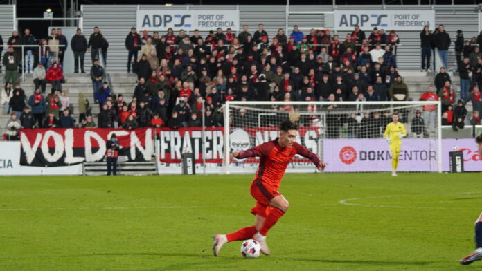 Stillingen er tæt. Randers nummer tre med 30 point, FC Fredericia nummer fem med 29. Hver scoring flytter rækkefølgen. Silkeborg gik forbi Fredericia i går med sejren over Vejle, der er rykket ud, men Fredericia har kampen i aften i baghånden. Det bliver tæt de kommende uger – og hver kamp kan ændre billedet.