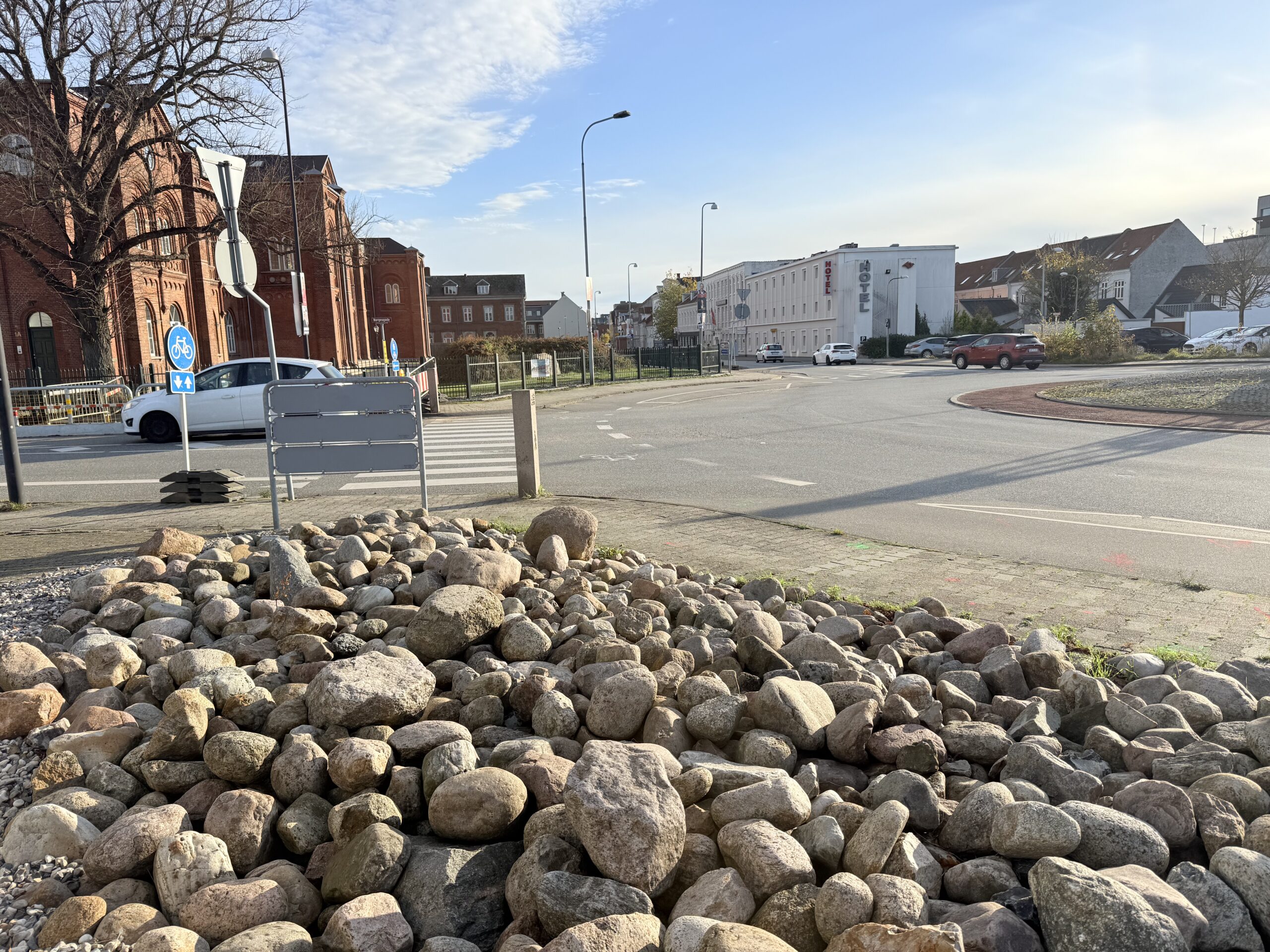 Trafikken bliver ledt via signalregulering og omkørsel, mens gående og cyklister fortsat kan passere området, oplyser kommunen.