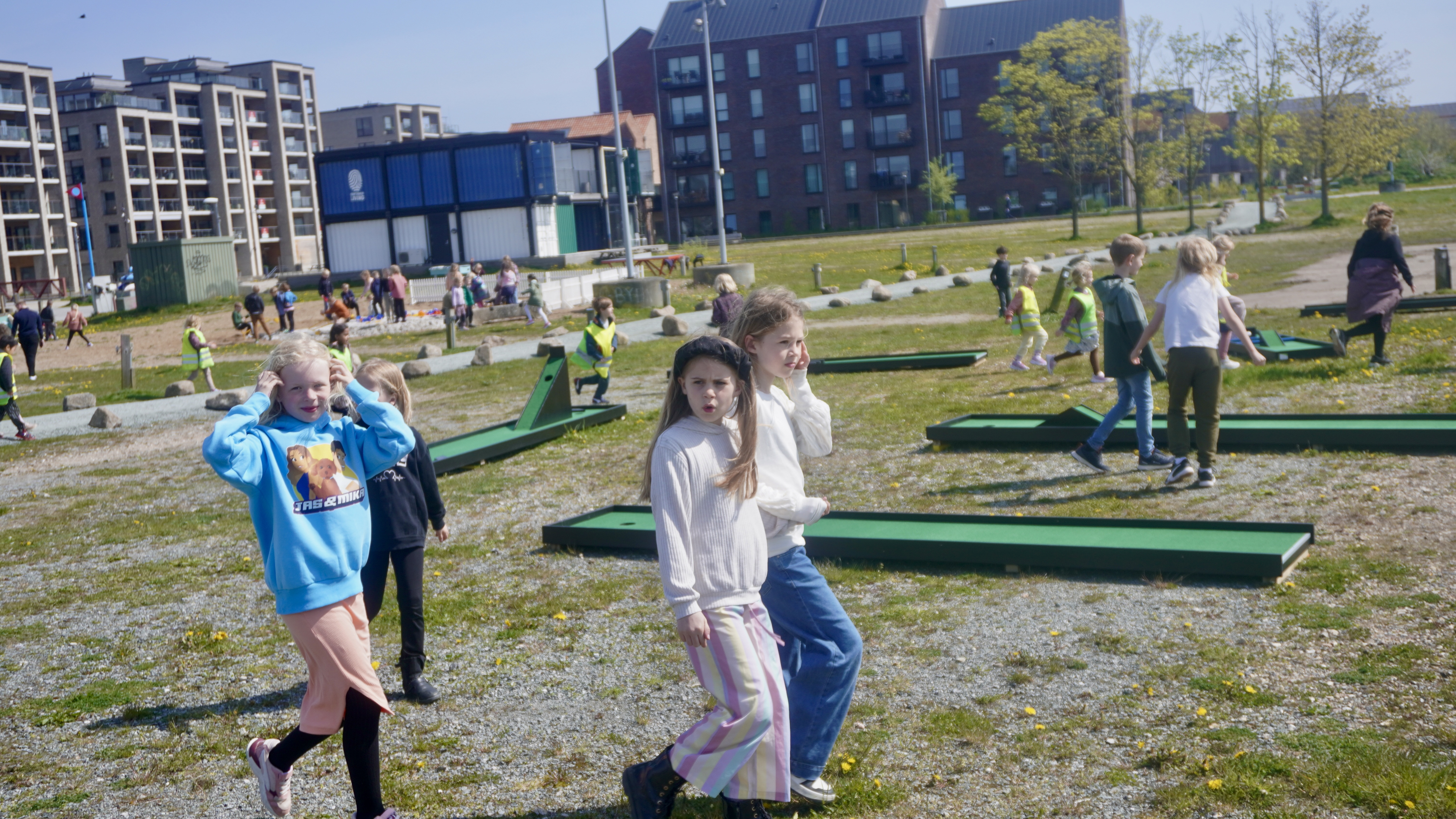 Samtidig blev der åbnet op for, at børnene, der sad og ventede, kunne komme ud og benytte sig af faciliteterne. I den lune forårsvarme gik turen derfor ud for at udforske området, der i sommermånederne er kendt som Havnens Oase, hvor man kan boltre sig på området, der i de seneste år har stået øde.
