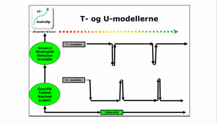Når vi oplever det – det fantastiske flow mellem generaliserings- og detaljeringsgrad i ledelsen og kommunikationen – så har lederen gang i T- og U-Modellerne. T- og U-modellerne er to sider af samme sag.