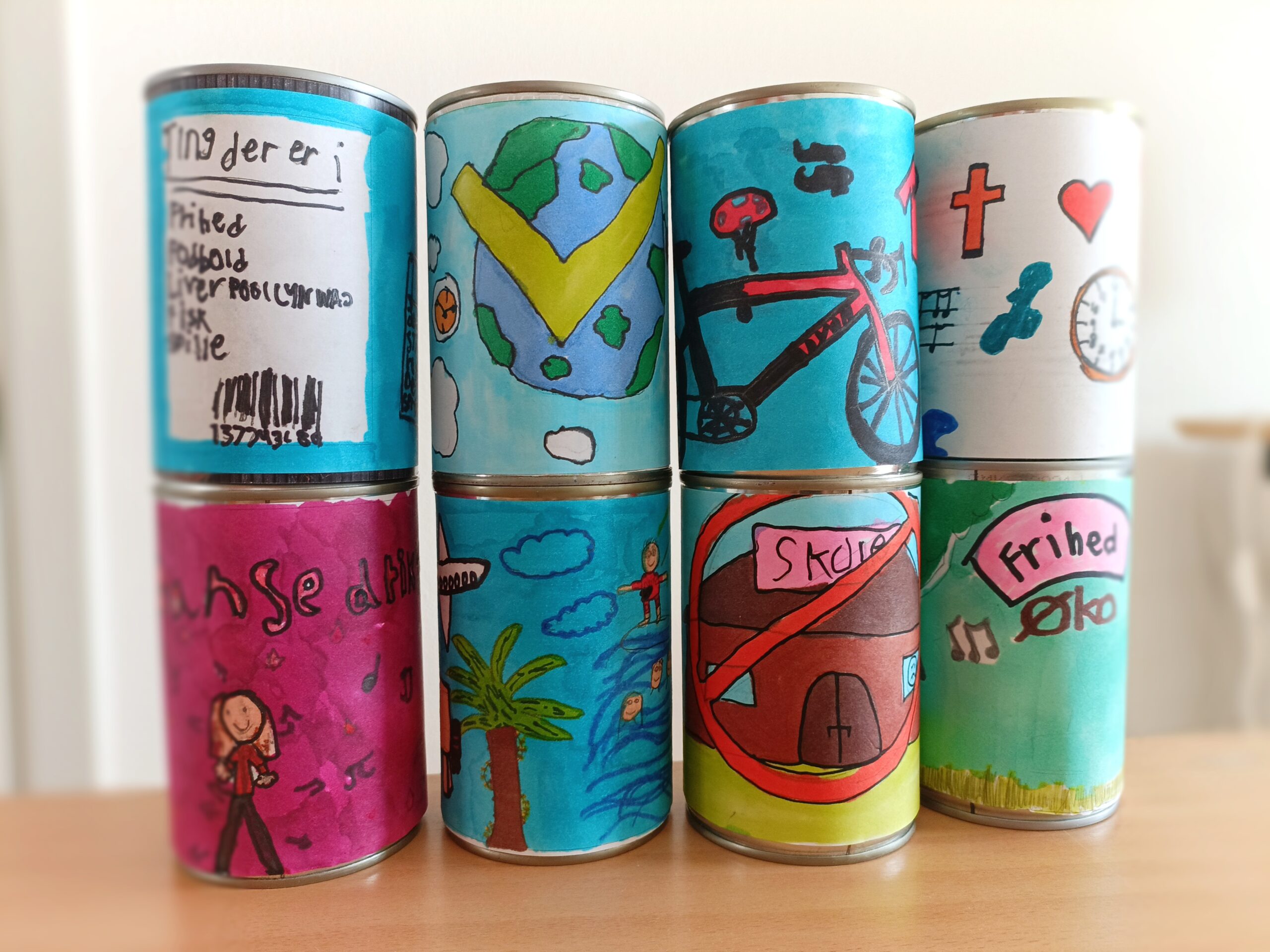 Skolerne bag værkerne er Kirstinebjergskolen afdeling Høgevej, Erritsø Fællesskole afdeling Krogsager, Fjordbakkeskolen afdeling Skærbæk, Skt. Knuds Skole og Fredericia Friskole. Blandt udstillingens højdepunkter er Fredericia Friskoles værk »Frihed på dåse«, som er et af mange spændende bidrag.