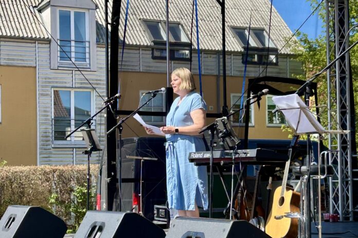 »Sikke et fantastisk vejr, vi har bestilt i dag,« lød det indledningsvis fra Malene Søgaard-Andersen, der med et smil kiggede ud over den tæt pakkede plads. Selvom hun fik den opmærksomhed, som enhver politiker kan drømme om på scenen, var den dog en smule sværere at fastholde blandt publikum. Rundt omkring stod folk nemlig med ansigtet vendt mod solen, optaget af at hilse på hinanden, skåle i kolde drikkevarer eller småsnakke om weekendens gøremål.