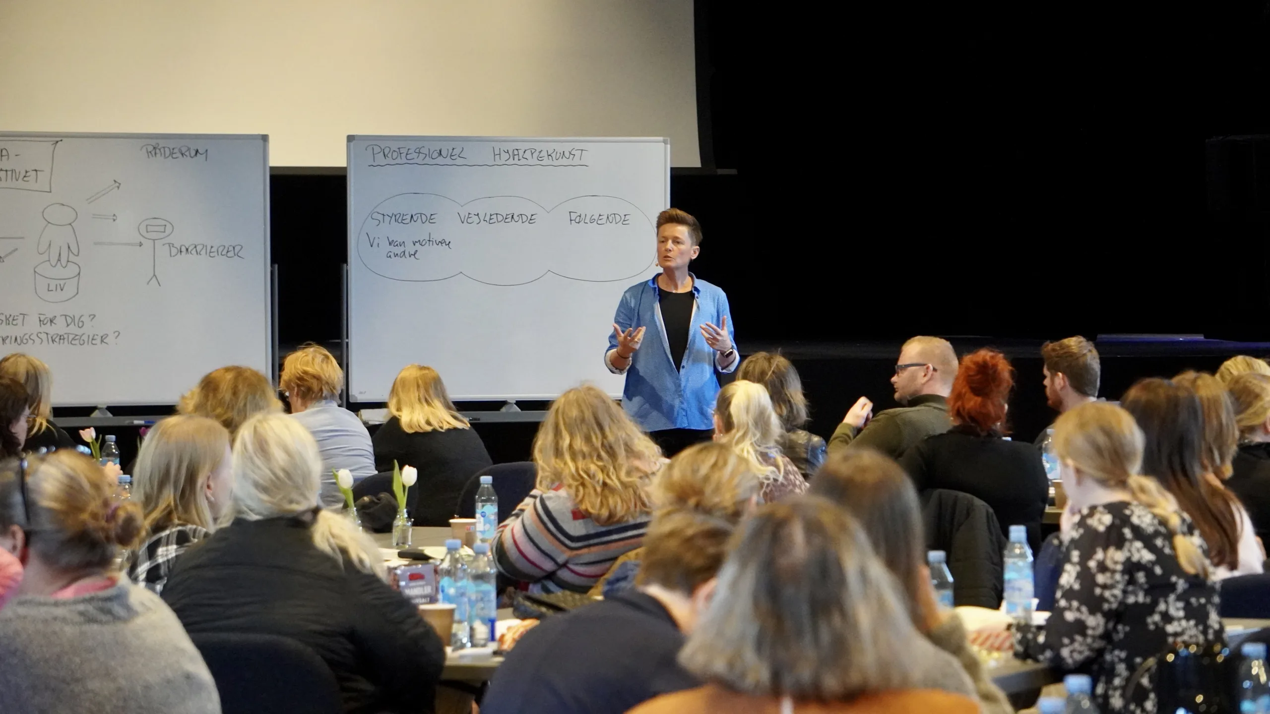 Klokken 09:00 gik Dorthe Birkmose på scenen. Lindberg Fenger Kursus- og Videnscenter, der ligger på Ryttergrøftvej i Fredericia, kunne ikke holde foredraget inhouse, da de kun kan have omkring 50 hos dem selv.