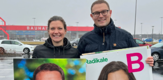 Christian Rabjerg Madsen og Lotte Rod satte de første valgplakater op...