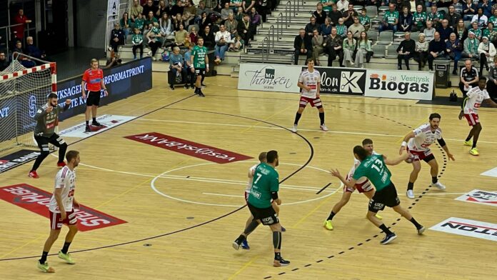 Men starten på kampen var ikke uden udfordringer for Nagy. De første seks skud på mål fra Skjern fløj direkte ind bag ham, hvilket gav ham nogle svære sekunder i sin debut. Det var tydeligt, at han hurtigt skulle finde sit niveau i den intensitet, der følger med topkampe i håndbold. Heldigvis for Nagy og FHK kom hans redning på en fri kontrachance fra Skjern’s Noah Gaudin, som han formåede at stoppe. På det tidspunkt var stillingen 6-3 til Skjern, og hvis ikke det havde været for Nagy, kunne vestjyderne have været foran med hele fire mål.