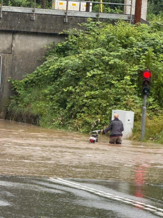 Flere borgere melder samtidig om store mængder vand på vejene i hele Fredericia-området, og tunnelen i Taulov er ingen undtagelse. Her står vandet så højt, at forbipasserende umuligt kan komme igennem til fods uden at blive gennemblødte.
